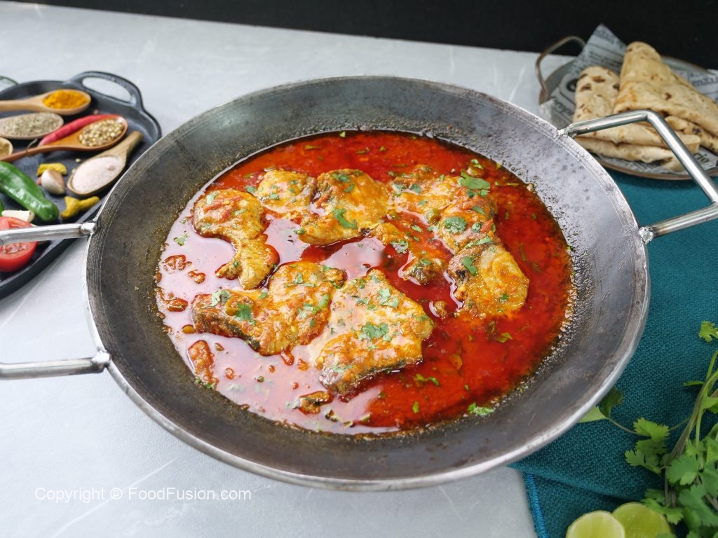 -Karahi mein cooking oil garam karein aur fish ko tez ancch per surf 30 seconds kliya fry ker lein & side per rakh dein.