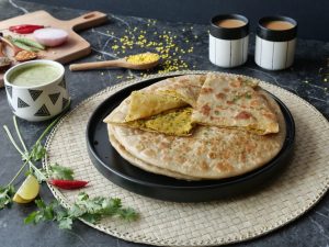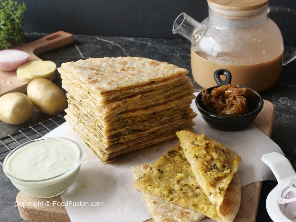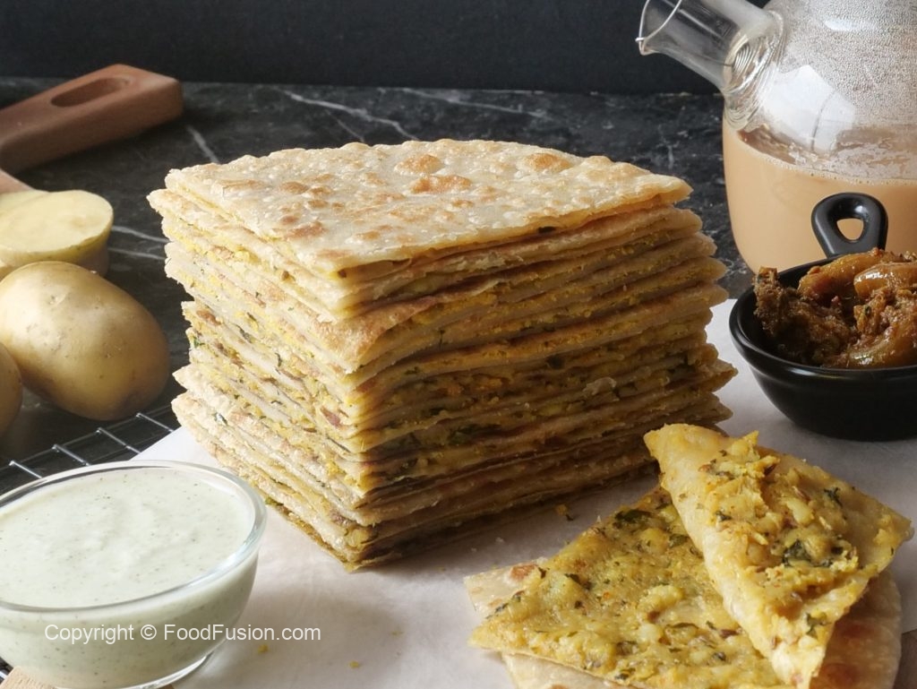 -Heat griddle,place rolled paratha & cook from both sides with ghee until golden & crispy.