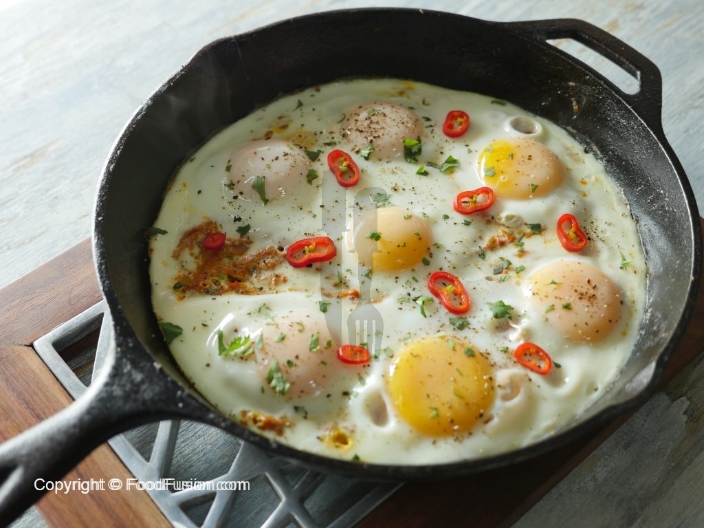 Now add eggs one by one and cook on low flame for 2-3 minutes then cover and steam cook until eggs are done.