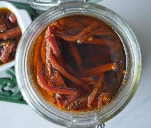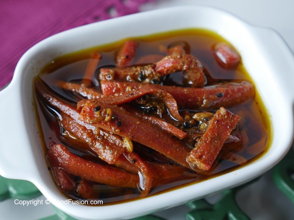 In carrot achar,add mustard oil and mix well (yields 630g).