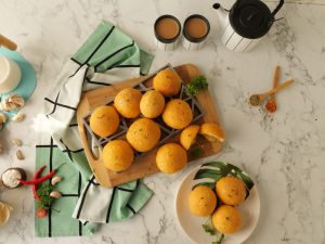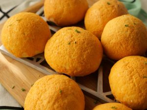 -Place herbal cheese ball in the center of rolled dough,apply water at the edges,gather all the edges,pinch & seal & make a round ball.