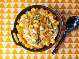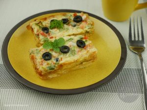 -Stack them on each other and place them one by one in a greased 4 x 9-inches bread loaf pan (curve side upwards).