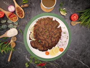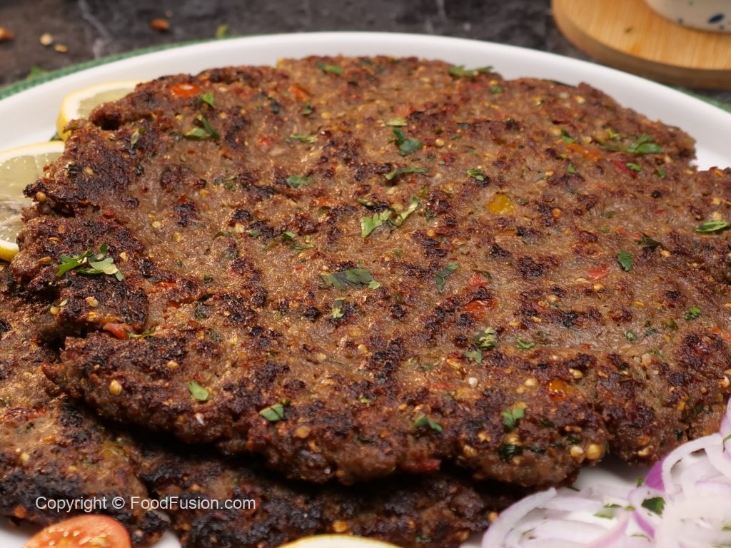 -In a frying pan,add cooking oil,place kabab on frying pan,press and spread evenly & cook on low flame for 4-5 minutes each side (makes 3).
