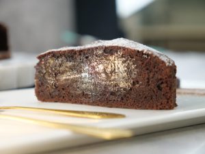 Bake in preheated oven at 165°C for 25 minutes (on lower grill with fan on).-Let it cool.