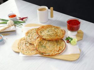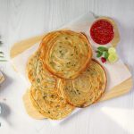 Hara Pyaz Lacha/Thread Paratha with Kathiawari Chutney