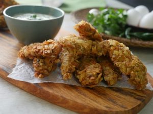 Chicken tenders ko mayo yogurt sauce ka saath serve karein!