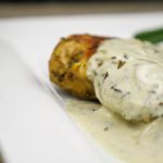 Tarragon sauce ko grilled chicken per dal ker serve karein.