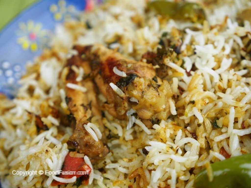 For biryani layering,add chaat masala,whole spice powder,yogurt,mint leaves,green coriander,fried onion,tomatoes,green chilies,boiled rice,fried onion,green coriander,mint leaves,tomatoes,kewra essence and oil.
