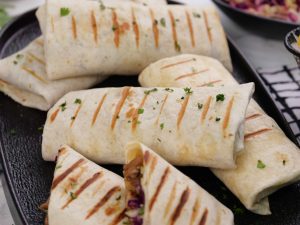 -On a prepared tortilla, add salad, salad dressing, & fold it.