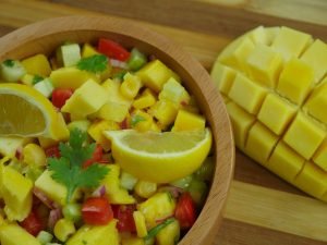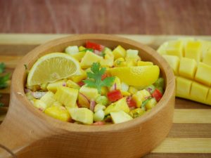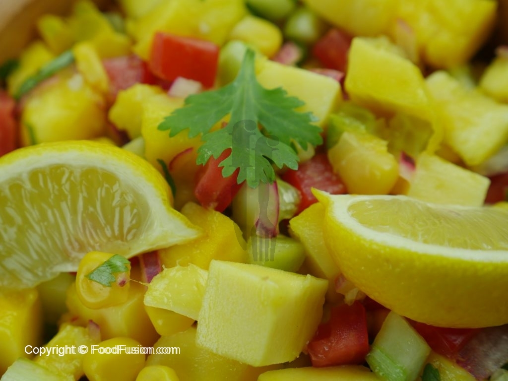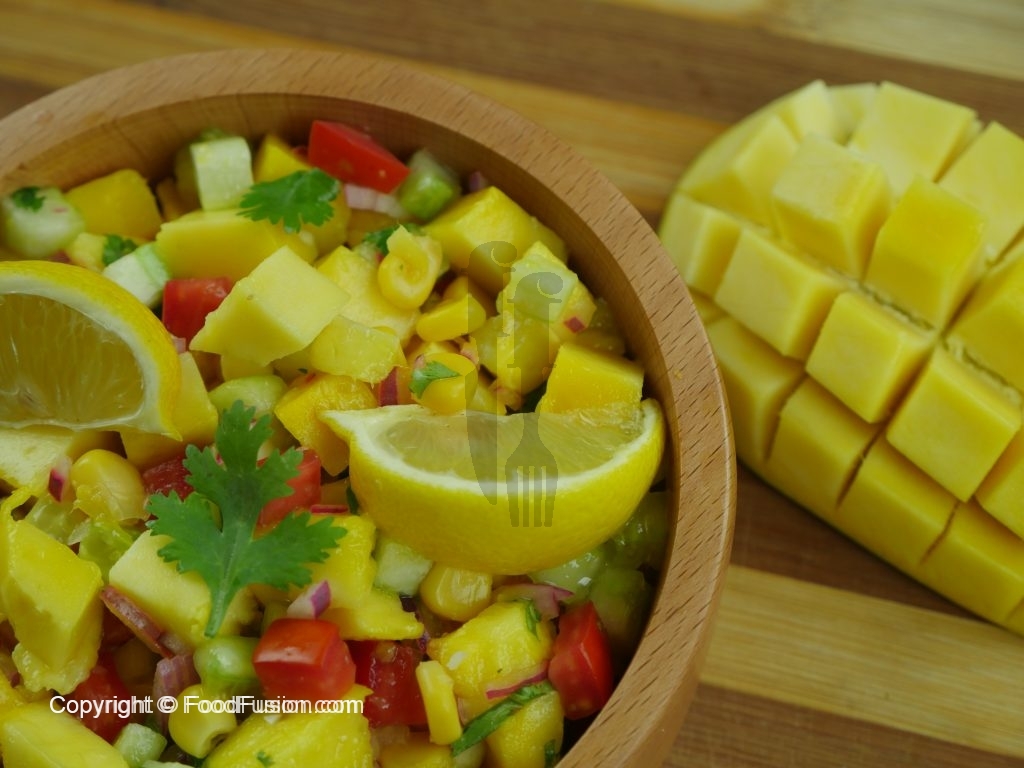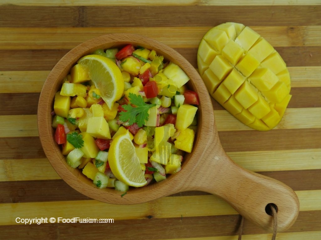 Try this fresh, healthy and nutritious Mango Fusion Salad recipe with a touch of lime pickled onions. Also learn how to beautifully cut a mango.