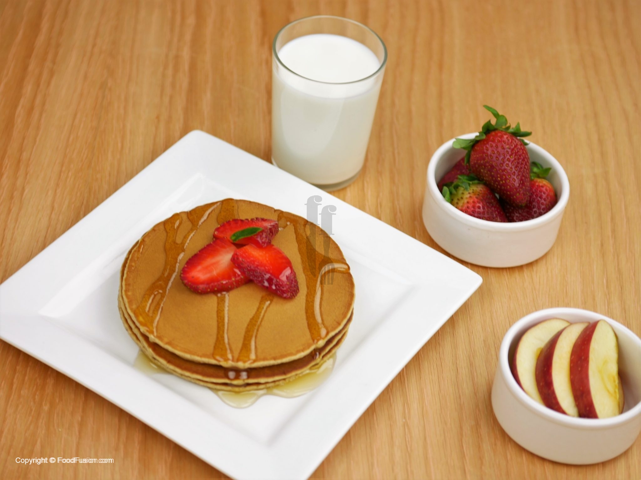 Using non-stick frying pan,pour ¼ cup of batter for each pancake.