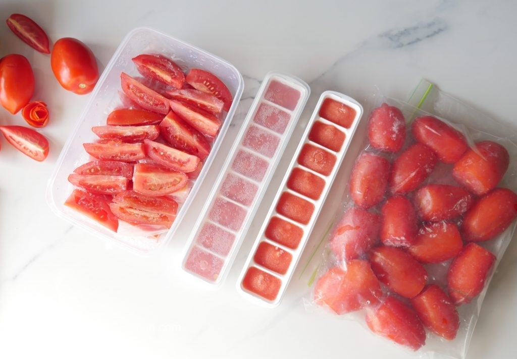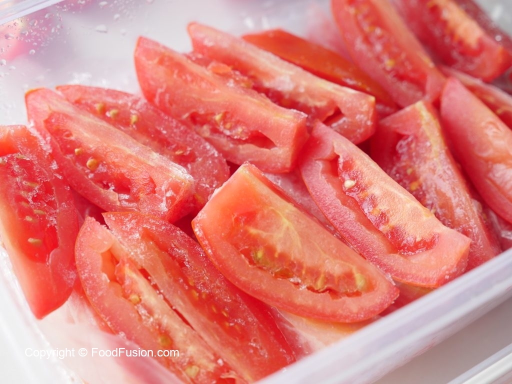 Dip freeze tomatoes in water for 5-10 seconds to thaw skin & remove its skin.