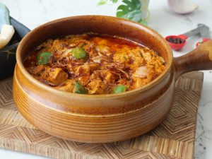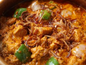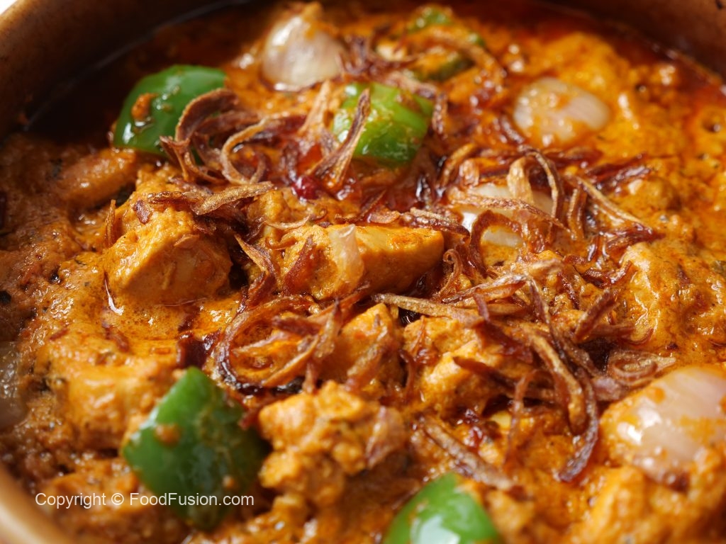 -In a wok,add cooking oil,marinated chicken,mix well & cook on medium flame until chicken is tender (12-15 minutes) then cook on high flame until oil separates.