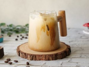 Serving glass mein ice cubes,doodh aur lotus coffee mixture (to taste) dal ker thanda serve karein!