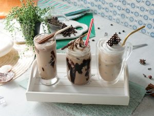 Serving glass mein ice cubes aur tayyar tres leches iced coffee dal dein,whipped cream aur chocolate sa garnish ker ka serve karein.