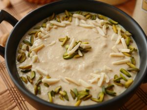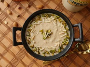 Bowl mein dry milk powder,badam aur pista dal ker ache tarhan mix ker lein (makes 8 cups approx. 1 kg).