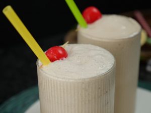 -Shaker glass mein ice,tayyar lemon sugar syrup (3-4 tbs) aur coconut milk dal ker ache tarhan shake ker lein.