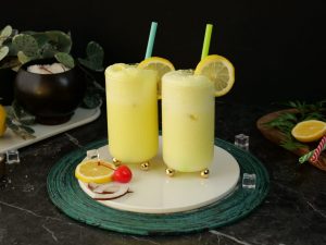 -Lemon juice aur yellow food color dal ker ache tarhan mix ker lein & side per rakh dein.
