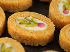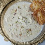In a serving bowl,add rabri,sprinkle almonds,pistachios & refrigerate until chilled.