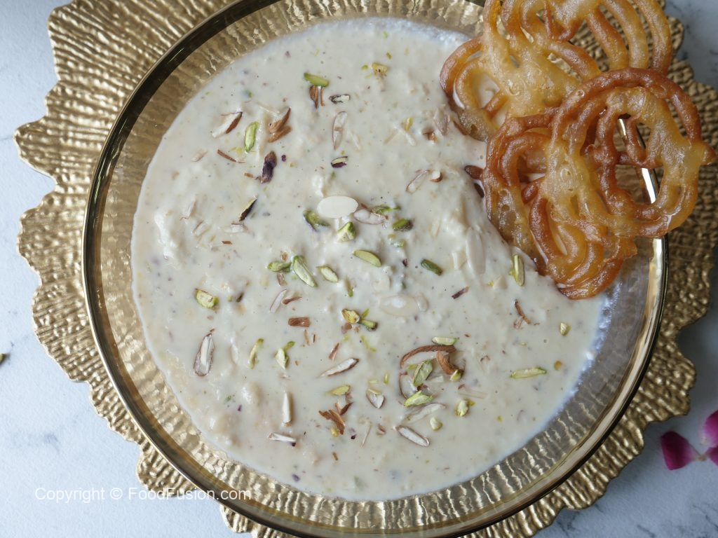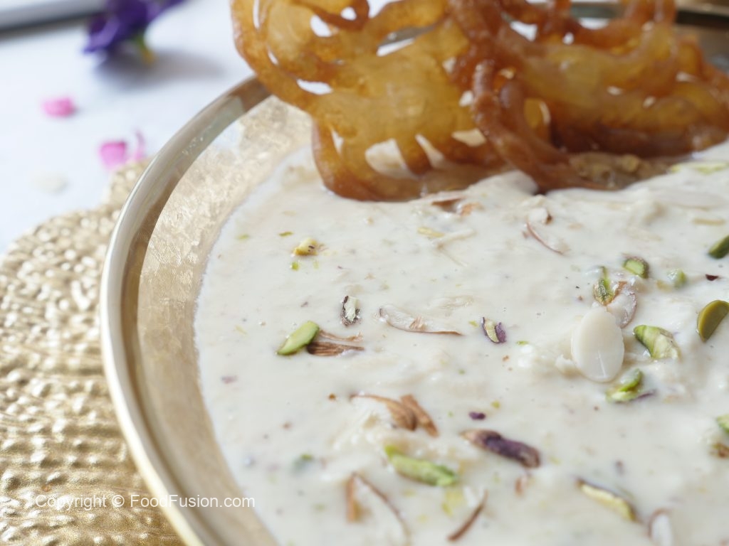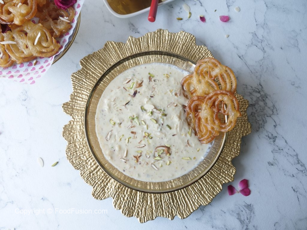 Try this amazing combination of Jalebi Rabri a treat for anyone with a sweet tooth. #HappyCookingToYou #FoodFusion #OlpersCream