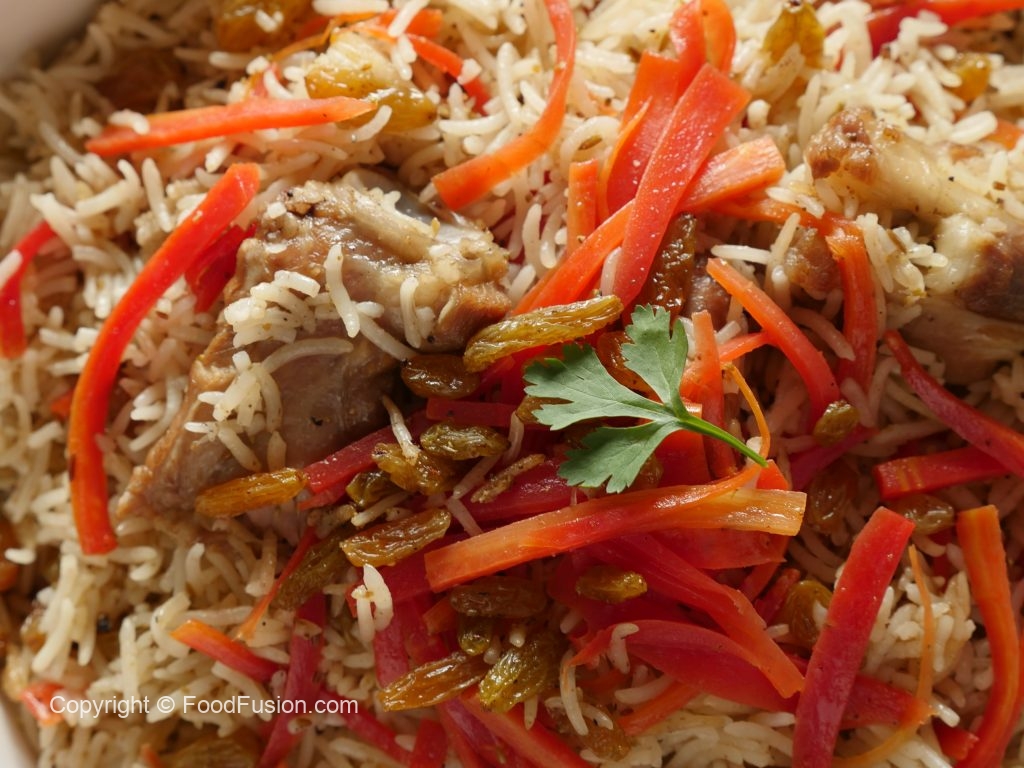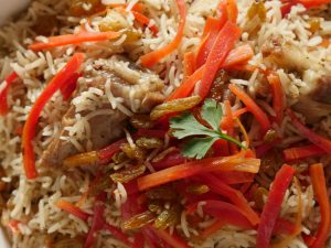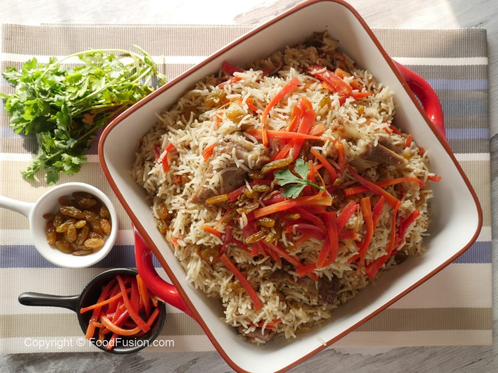 Add remaining spice mix to taste,fried raisins and fried carrots.