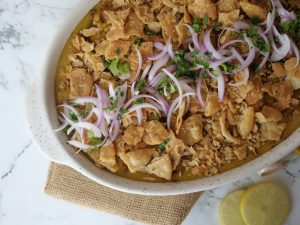 Kala Chana Kadhi Chaat a comforting iftar recipe. Many people have it on its own or serve with rice without the chaat toppings as a meal. #happycookingtoyou #digitalammi #FoodFusion #iftarrecipes