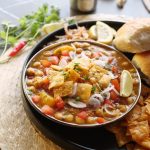 -Add chickpeas,potatoes,green chillies,fresh coriander,mix well & cook on medium flame for 18-20 minutes,cover & cook on low flame for 4-5 minutes.