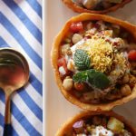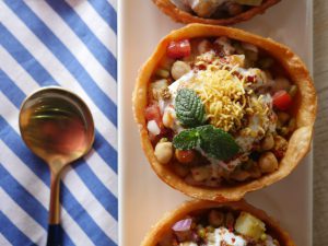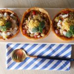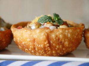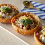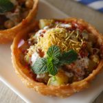 On prepared katori,add chaat,green chutney,meethi chutney,yogurt,meethi chutney,red chili crushed, chaat masala,nimco sev & serve.