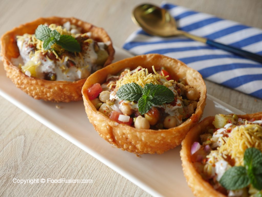 In wok,heat oil and fry katori wrapped with dough until golden & crispy and remove small bowl with the help of the tong (makes 10-12).