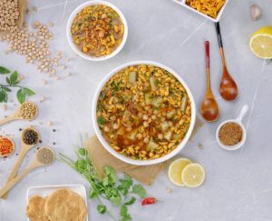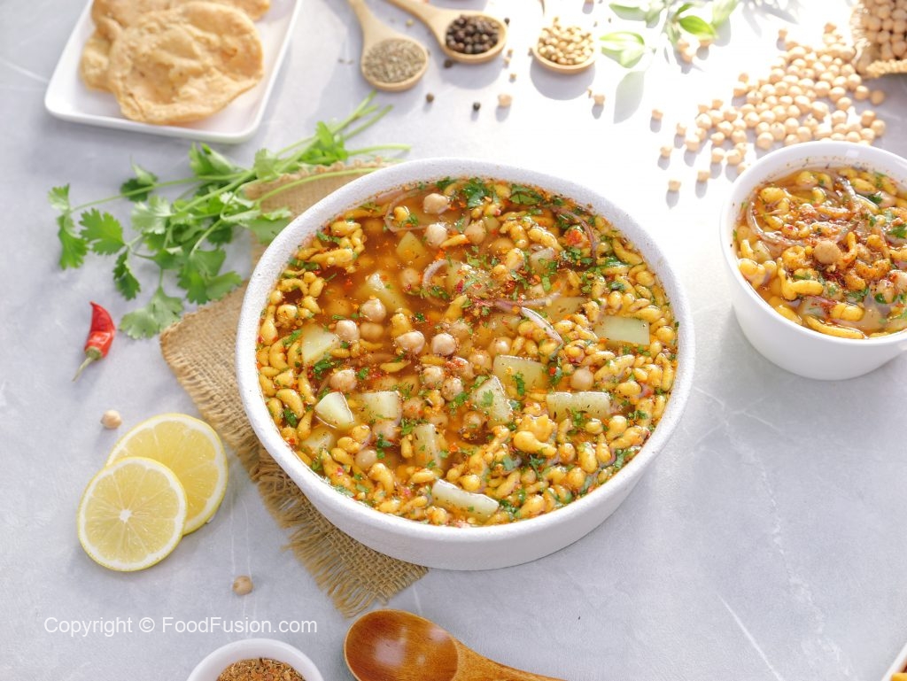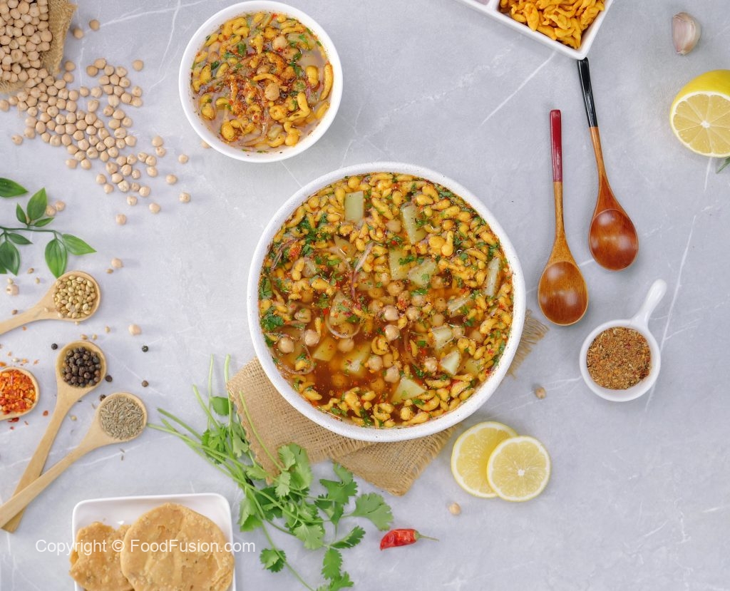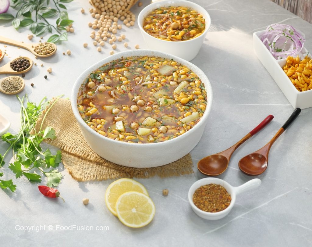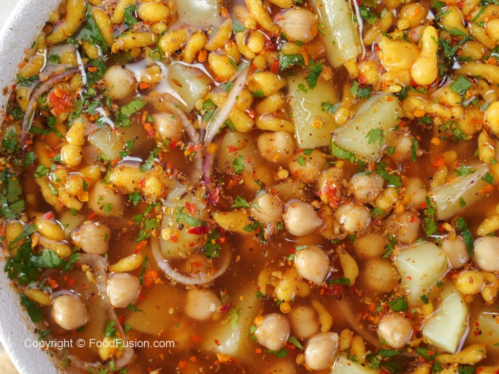 -Add chickpeas,potatoes,onion,prepared baisan boondi,fresh coriander & mix well.