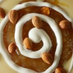 Serving bowl cooked khubani mixture aur tayyar custard dal dein aur cooked khubani mixture,cream aur khubani ka badam sa garnish ker ka serve karein.