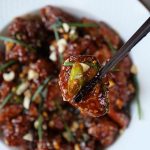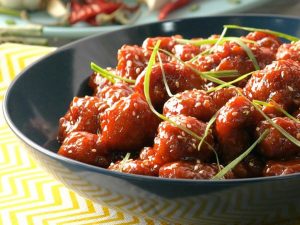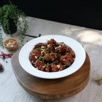 -In a wok,add garlic,ginger,tomato ketchup,soy sauce,vinegar,water,cornsyrup,brown sugar,red chilli powder,salt & red chilli crushed.