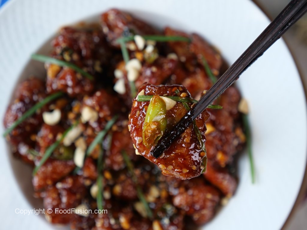 -In a wok,heat cooking oil & fry chicken until light golden,take out chicken pieces & let it rest for a minute & fry again until crispy & set aside.