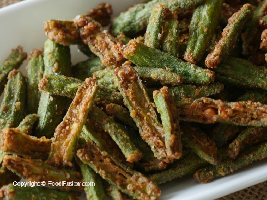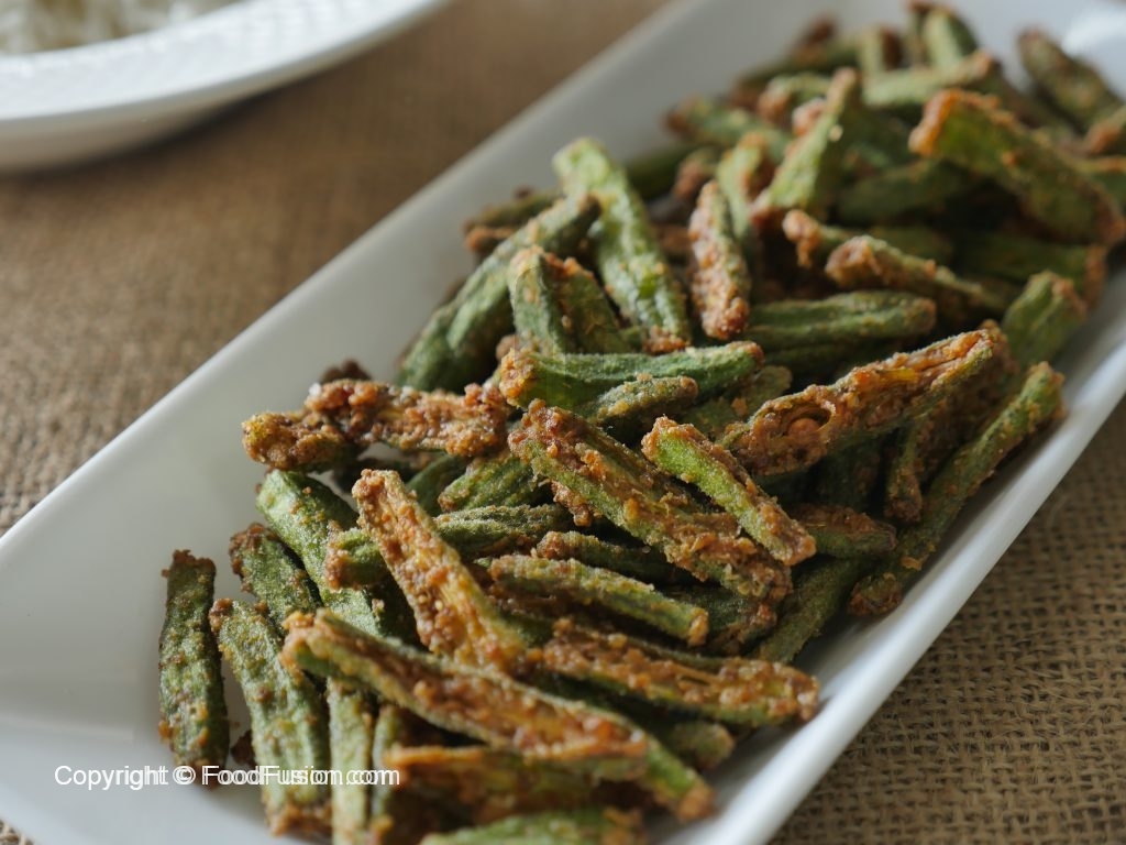 Bowl mein bhindi,lal mirch powder,garam masala powder,haldee powder,namak aur dhania powder dal ker ache tarhan mix karein aur 10 minutes kliya rakh dein.