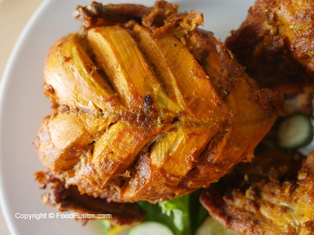Karhai mein oil garam karein aur whole chicken ko golden brown hunay tak deep fry ker lein.