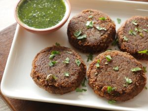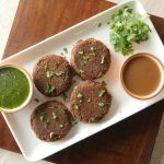 Grease your hands with oil,take a mixture and make kababs of equal sizes (makes 16).