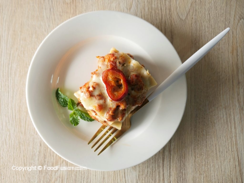 Lasagna sheets per white sauce aur red sauce with mince dal ker pheela lein aur roll ker lein.