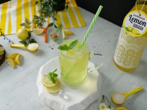 -In a serving glass,add ice cubes,prepared lemon squash (¼ cup) water (3/4 cup) & stir.