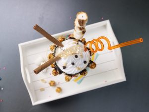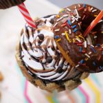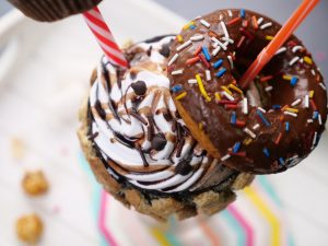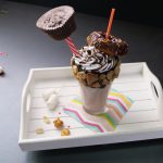 -Add prepared chocolate shake,whipped cream & decorate with chocolate syrup,chocolate sprinkles, chocolate chips, triple chocolate cupcake,donut & serve.