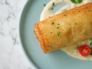 -Tayyar filling aur pyaz dal ker roll up ker lein.