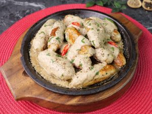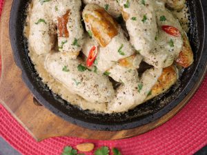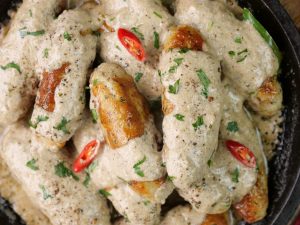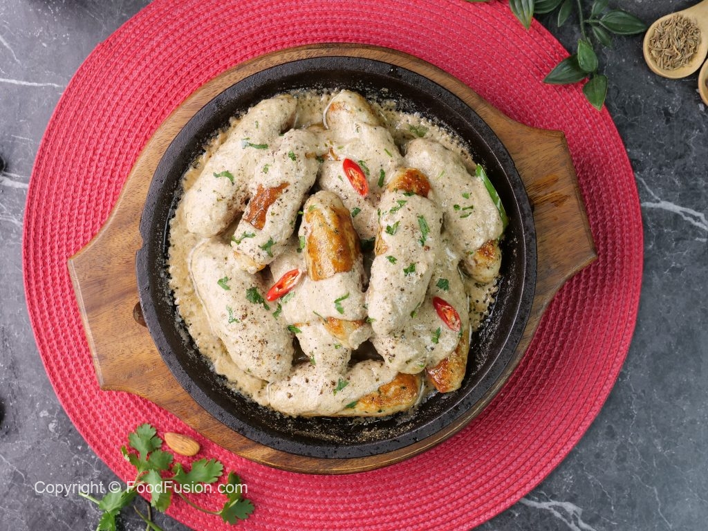 -Add onion rings,green chillies,kababs & pour creamy gravy.