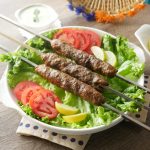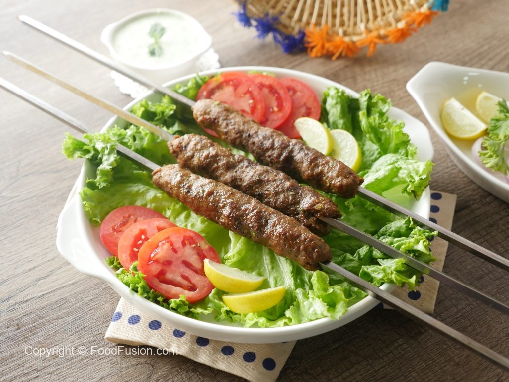 Grease hands with oil,take a mixture and make kababs of equal sizes on metal skewers. (makes 10-12).