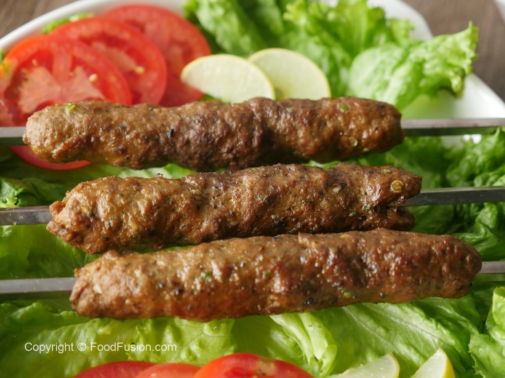 Haathon ko oil sa grease karein aur mixture ko la ker ek jaisay sizes ka metal skewers per kababs tayyar ker lein (makes 10-12).