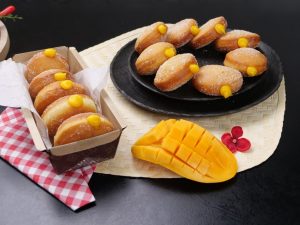 -Fit a piping bag,fill with prepared mango curd into each donut & serve! (Makes 10-12)