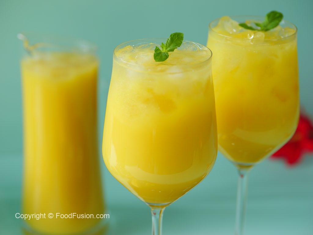 -Serving glass mein ice aur mango frooti dal dein aur podina sa garnish ker ka thanda serve karein!