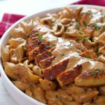 -In a serving dish,add cooked pasta,spicy chicken fillet,pasta sauce,fresh basil leaves & serve!