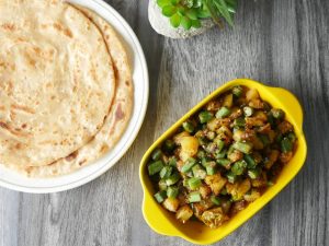 Hari mirch dal ker ache tarhan mix karein aur aloo half done hunay tak paka lein (approx. 5-8 minutes).