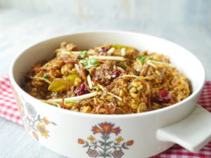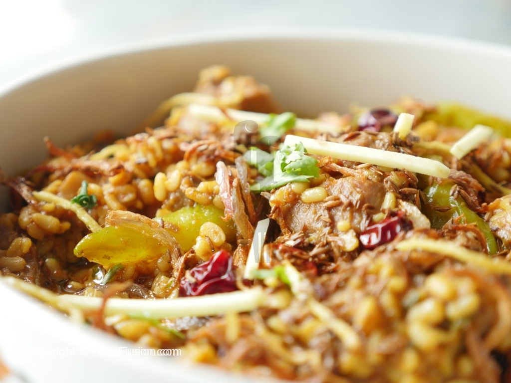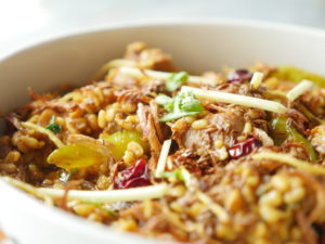 Zeera,sabut lal mirch aur adrak dal dein aur golden brown fry ker lein.