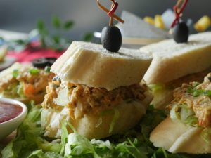 -Add cooked chicken,fold the mixture into a roll shape than move the potato roll to one side of pan.
