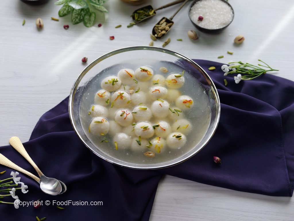 -Halki ancch per sheeray mein mini rasgulla balls dal dein aur darmiyani ancch per 3-4 minutes (without stirring) paka lein aur dhak ker 8-10 minutes ya size double ho janay tak paka lein.